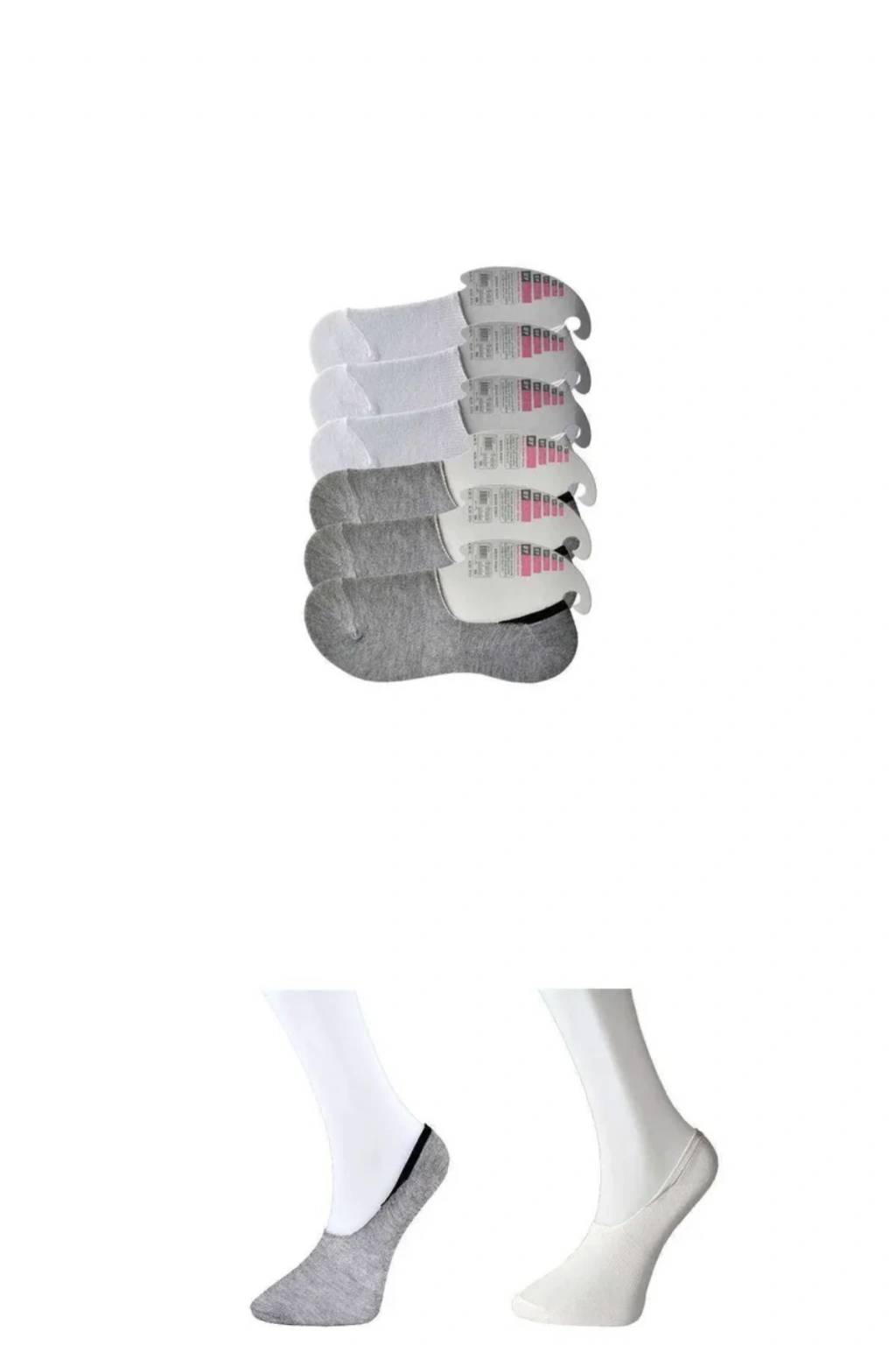 Gri ve Beyaz Kadın Babet Çorap 6 çift