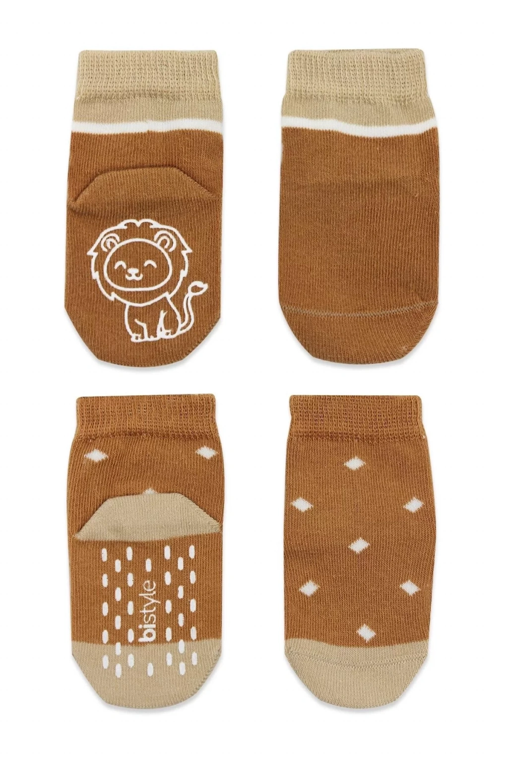 Hayvan Figürlü Kaymaz Erkek Soket Çorap 2'li Hardal