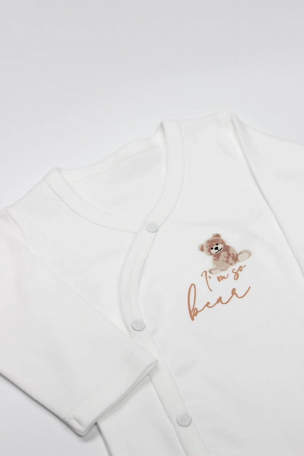 • Yumuşak ve esnek kumaş yapısıyla bebeğinizin hassas cildine uyum sağlar. • Uzun kollu tasarımı ile serin havalarda ekstra koruma sunar. • Sevimli “I Am So Bear” baskısıyla şık ve eğlenceli görünüm kazandırır. • Omuzdan çıtçıtlı yapısı sayesinde kolayca giydirilip çıkarılabilir. • Günlük kullanım için uygundur. • Nefes alabilen yapısı sayesinde bebeğinizi gün boyu rahat ettirir.