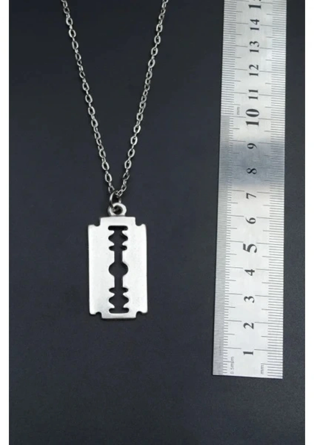 Jilet Çelik Kolye - Jilet Model Paslanmaz Gümüş Renk Çelik Kolye