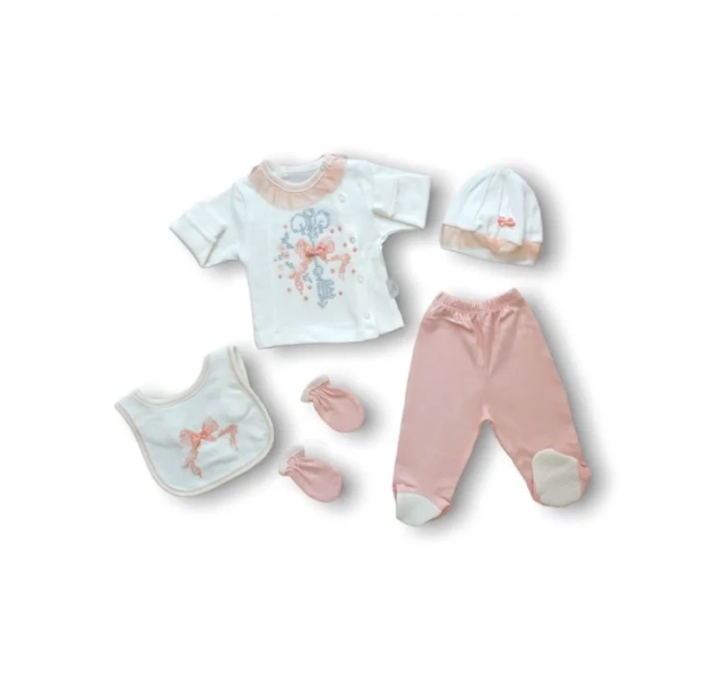 Kanaviçe Nakışlı 5li Zıbın Takımı Hastane Çıkışı Pudra