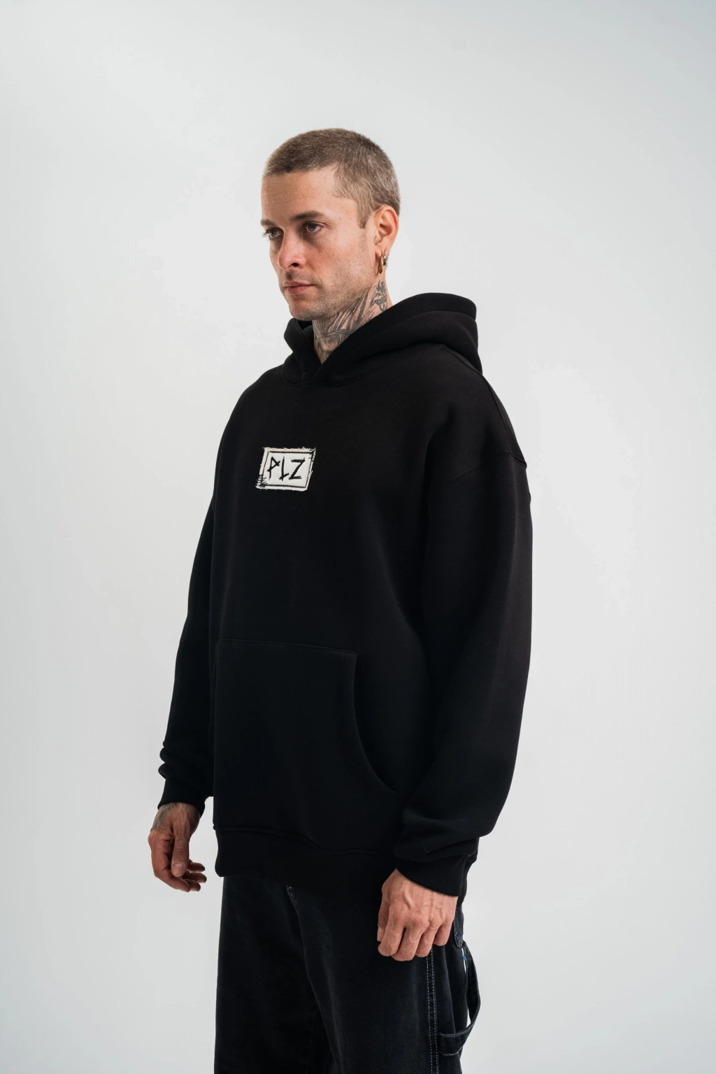 Kapşonlu Uzun Kol Patchli Nakışlı SweatShirt - Siyah