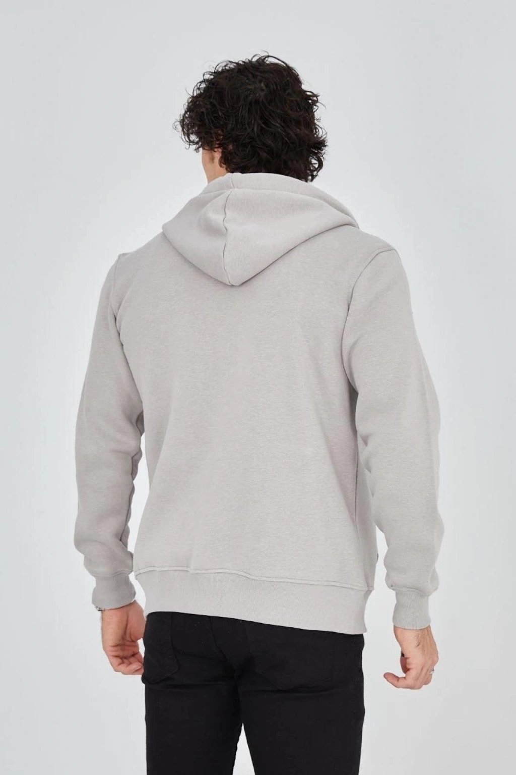 Kapüşonlu Düz Fermuarlı Hırka - Boyalı Gri