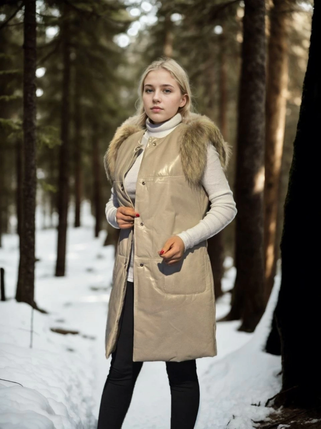 Kolsuz Hakiki Deri Kürk - Krem