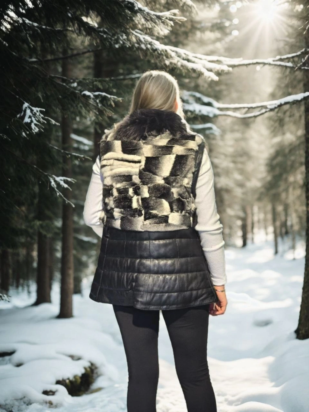 Kolsuz Hakiki Deri Kürk - Siyah -