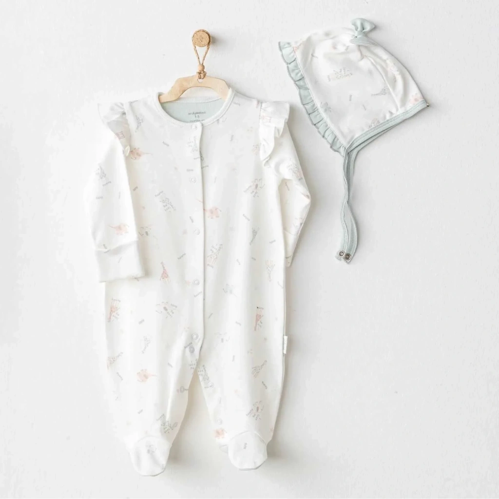 Ürünlerimiz bebeğinizin sağlığı düşünülerek birinci sınıf ham maddelerden üretilmiştir. Bebeğiniz için zararlı kimyasallar içermez. Azo-Free boya ve Nikel-Free aksesuarları ile uluslararası üretim teknikleri ve güvenlik standartlarına sahiptir. Yüksek kalite standartları Oeko-Tex belgesi ile tescillenmiştir. Kanserojen ve alerjik gibi hastalıklara yol açan formaldehit içermez. Kumaş Özellikleri: %100 Pamuk. Ürün İçeriği: 1 adet bebek tulum. 1 adet bebek şapka. Yıkama Talimatları: 30°C sıcaklıkta yıkayınız. Çamaşır suyu kullanmayınız. Düşük sıcaklıkta ütüleyniz. Baskıları ütülemeyiniz. Tambur kurutma yapılmaz.