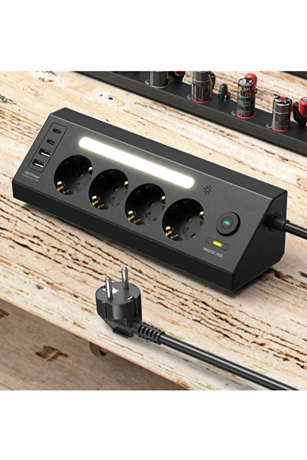 Lp764 Çoklu Gece Lambalı Priz Yüksek Gerilim Korumalı 4’lü Priz 2xusb 2xtype-c Çıkışlı Grup Priz Çoğaltıcı
