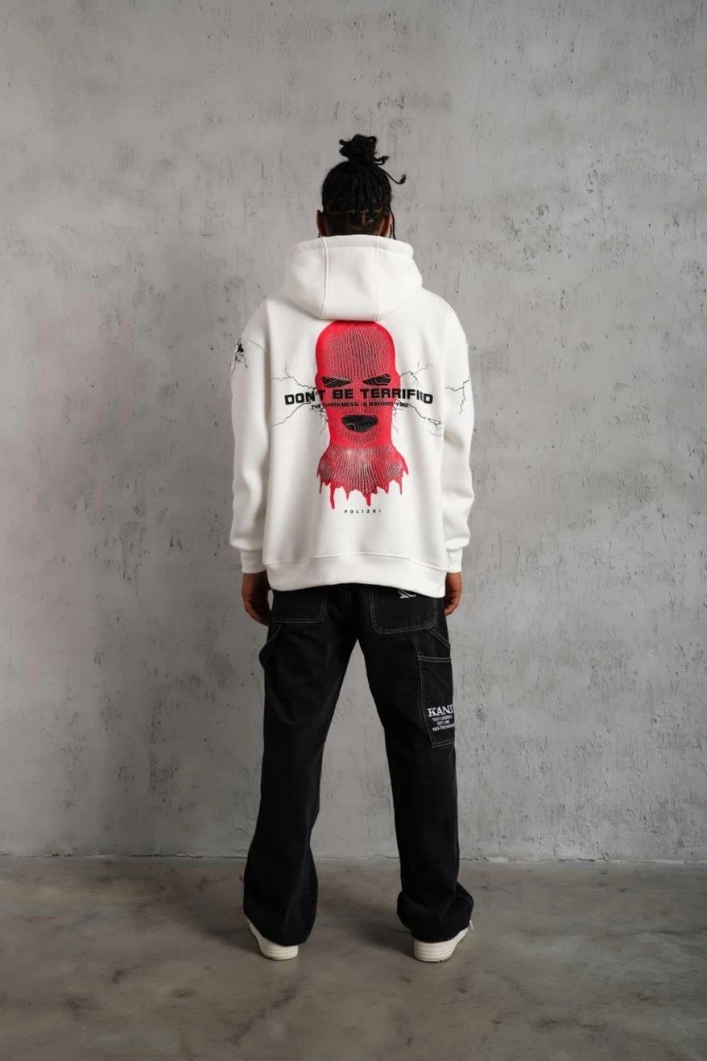 Maske Baskılı Kapüşonlu Sweat - Beyaz