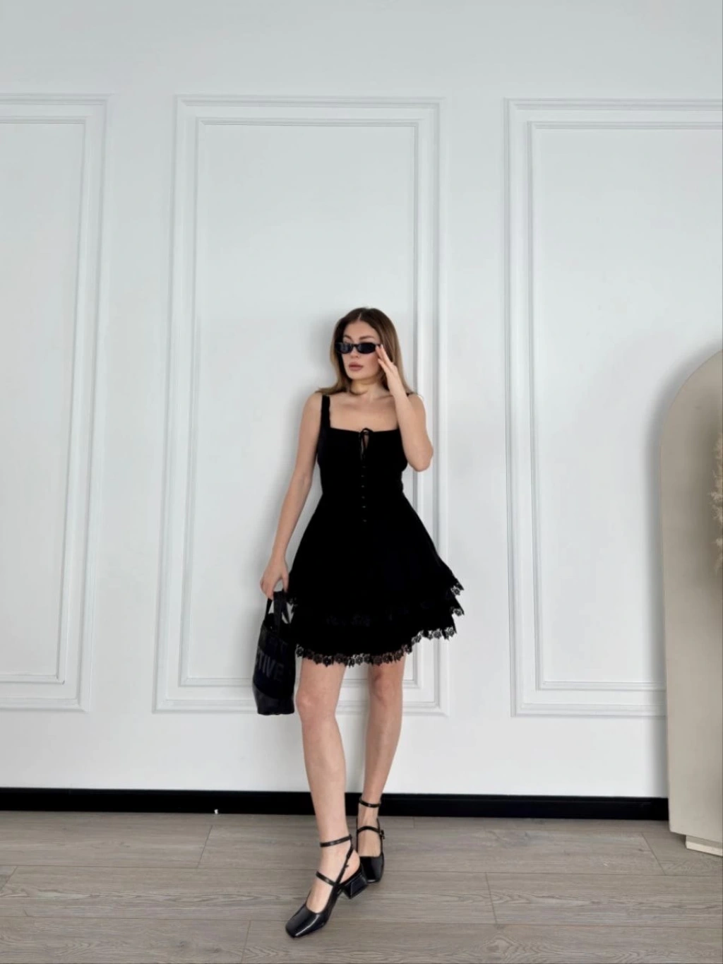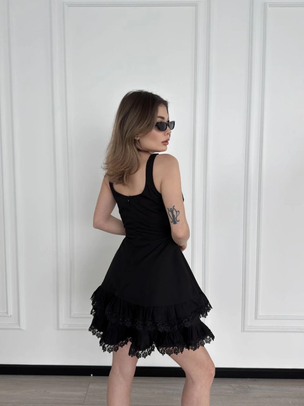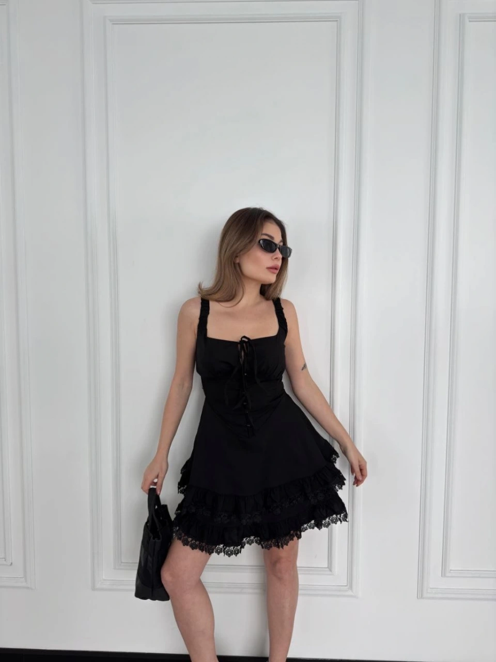 Mini Askılı Elbise - Siyah -