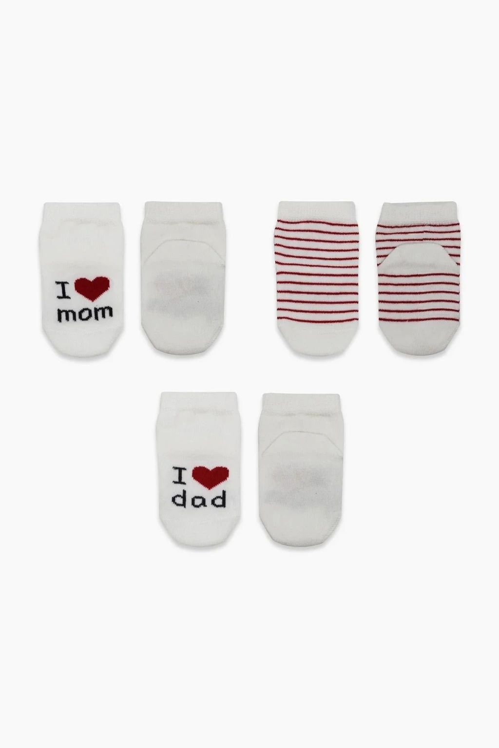 Bistil Organik Kız Erkek Bebek Dikişsiz Basic 3lü Mom Dad Desen & Mama Papa Desen Soket Çorap Kokulu Pamuklu Yumuşak Antialerjik
