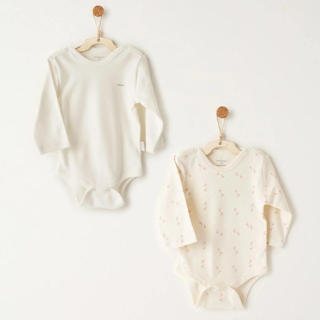 Flying Bloom White Yarım Kol 2'li Body 17118 Ekru Gül Kurusu