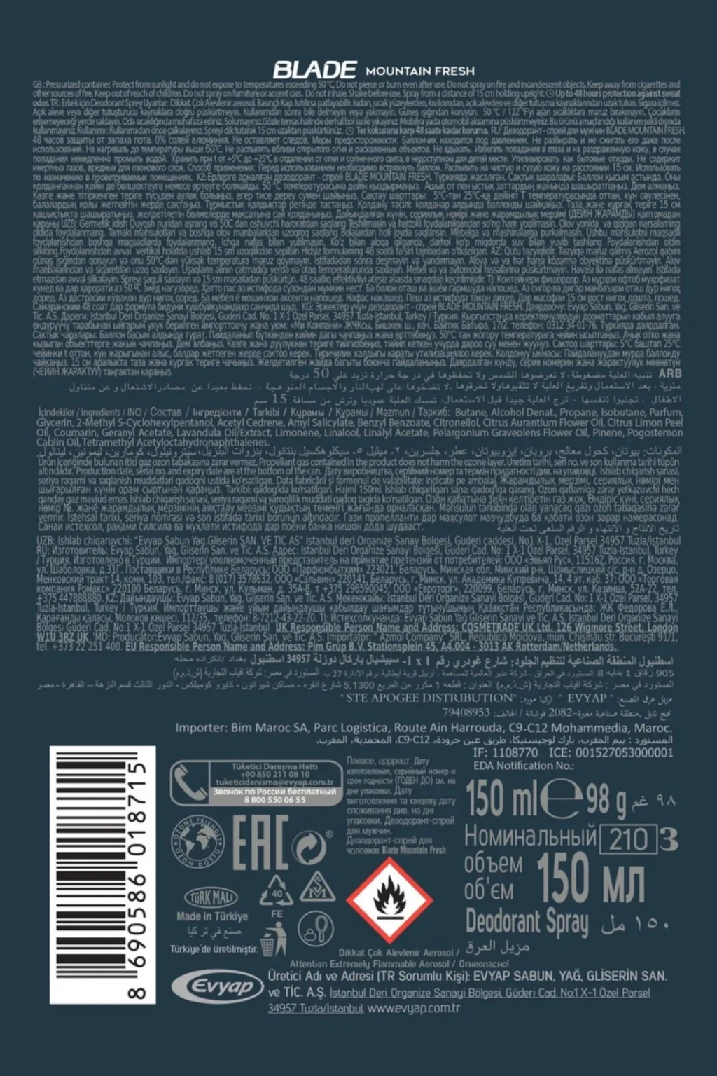 3 Adet Mountain Fresh Erkek Deodorant 150ml Leke Bırakmaz