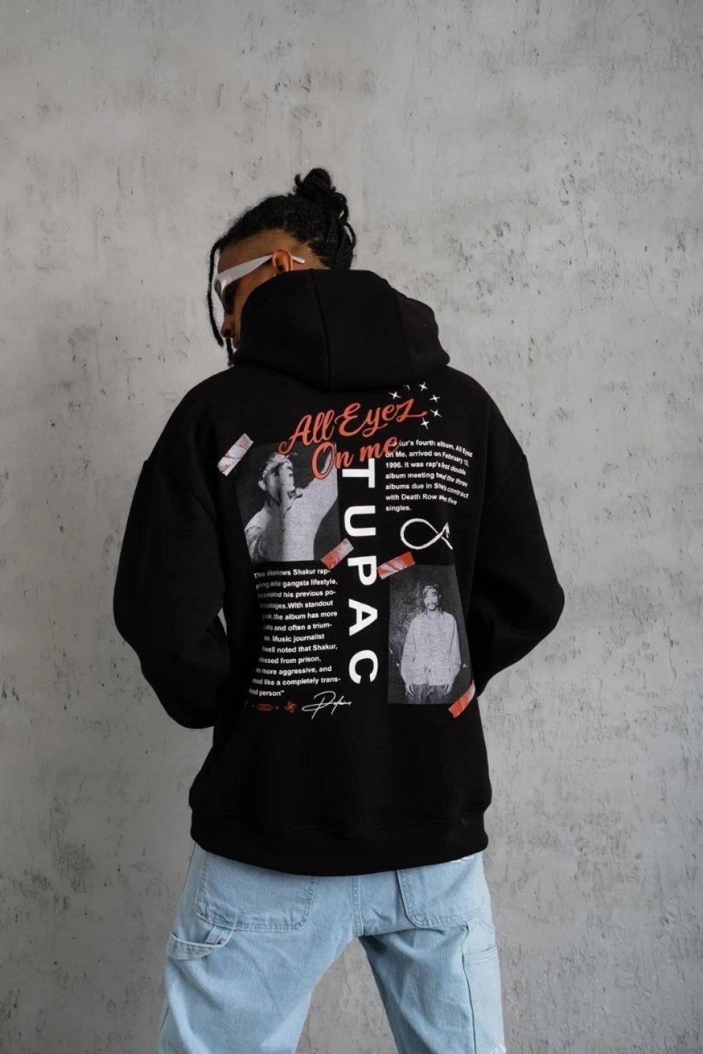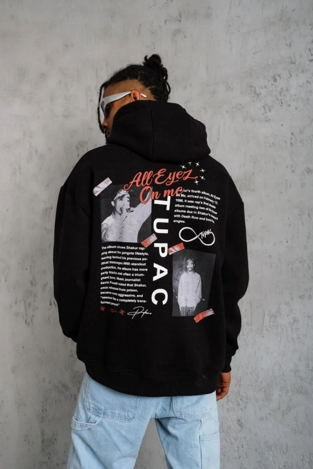 Ön Arka Baskılı Kapşonlu Sweat - Siyah -