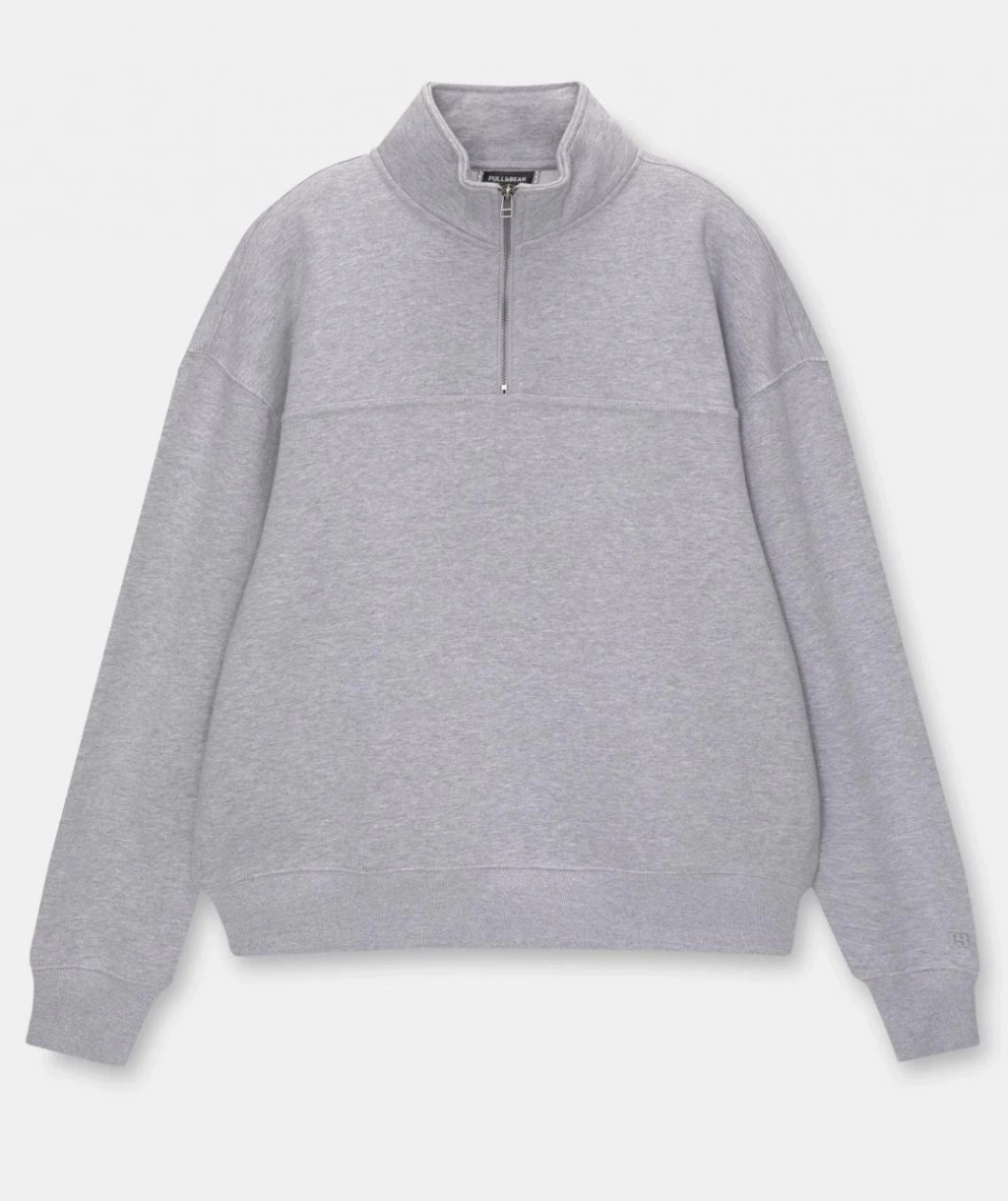 Oversize Yarım Farmuarlı Yakalı Basic SweatShirt - Gri -