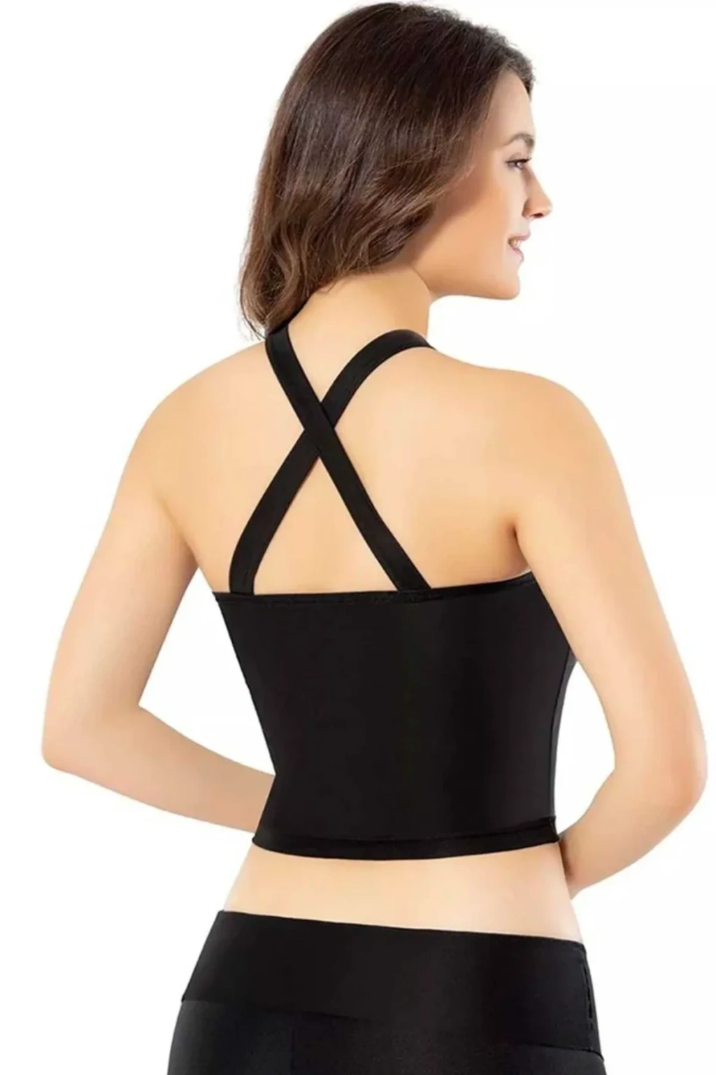 Pedli Dalgıç Modelli Krop Kadın Büstiyer Siyah