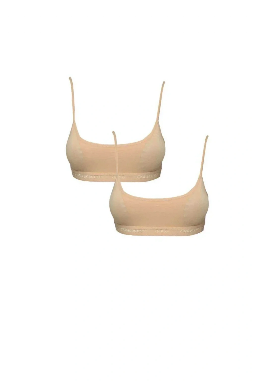 2 Adet Dantel Nakış İşlemeli Pedli Bambu Kadın Büstiyer Ten Krem