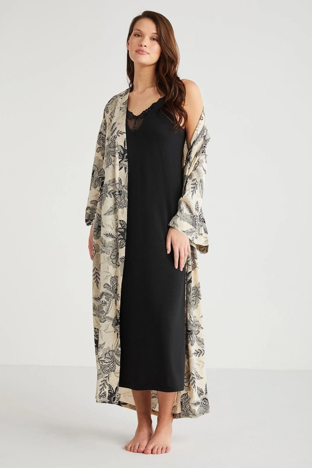 Catherines %100 Viskon Çiçek Desen 2li Sabahlık Gecelik Takımı