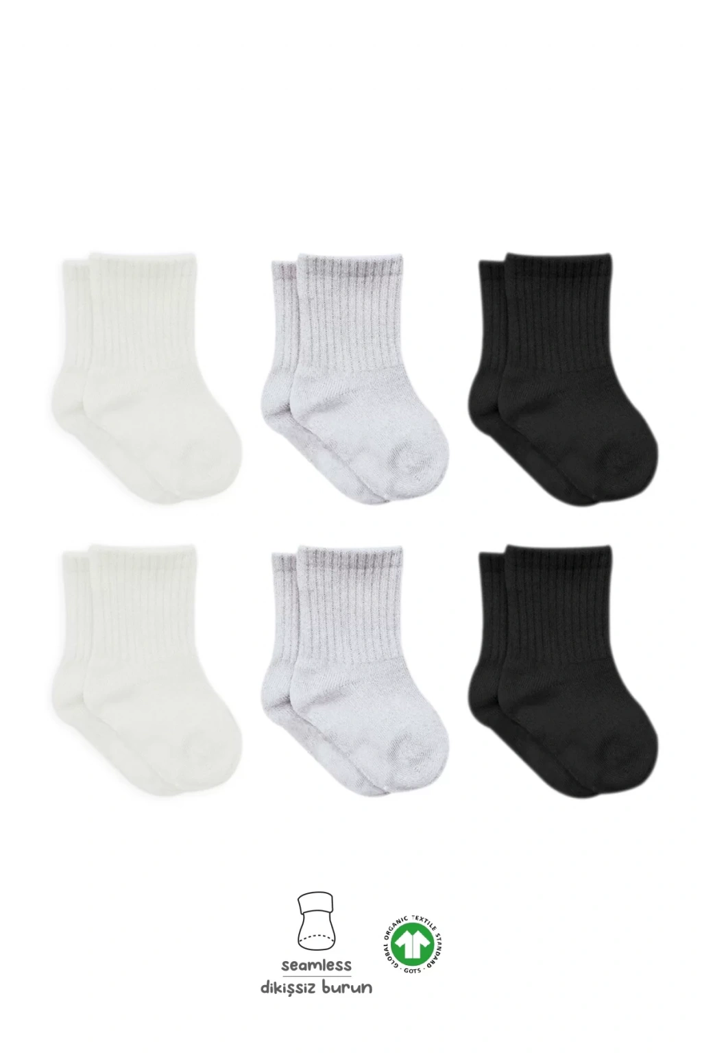 Penye Soket Çorap 6'lı Ekru Gri Siyah