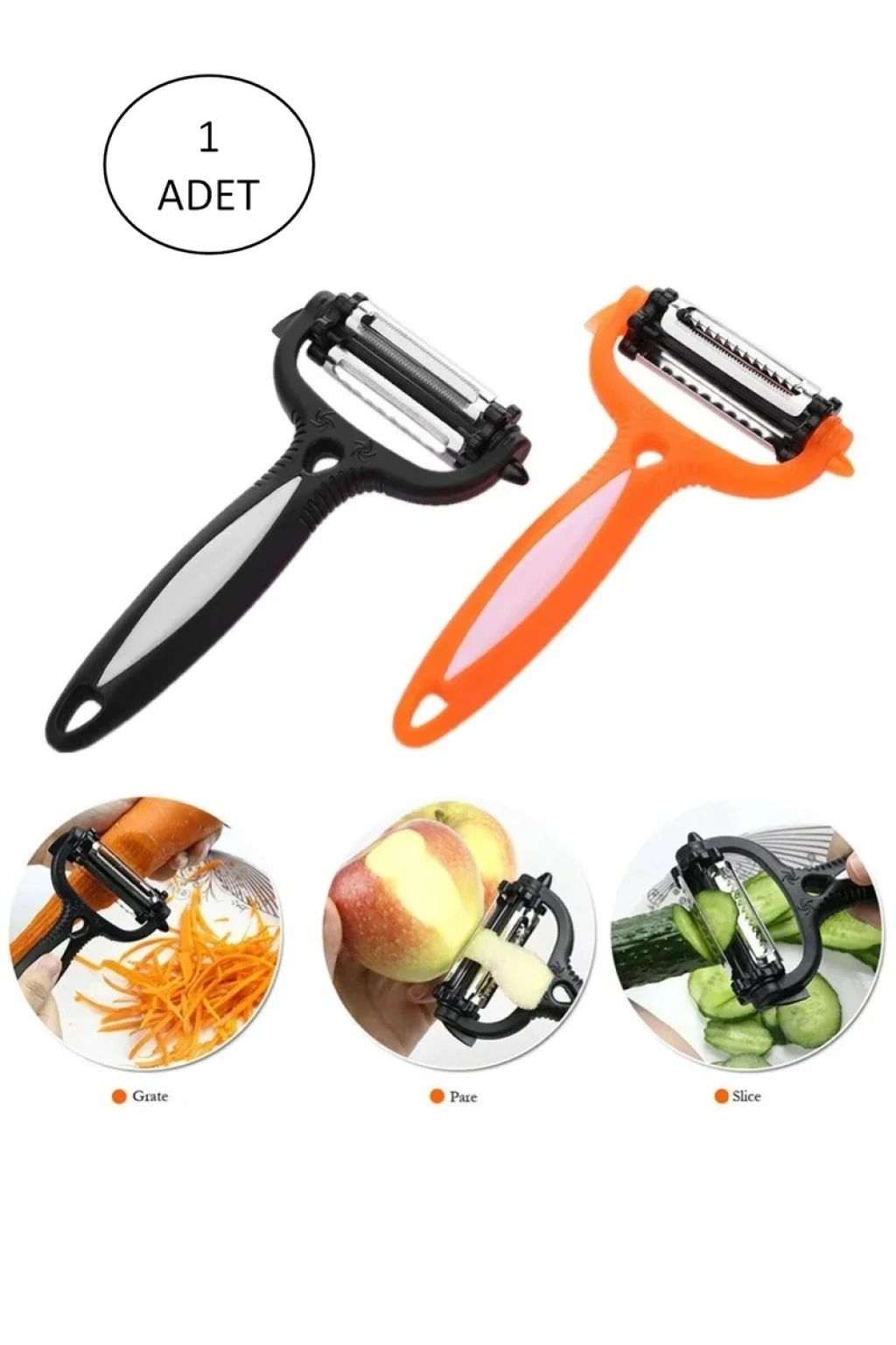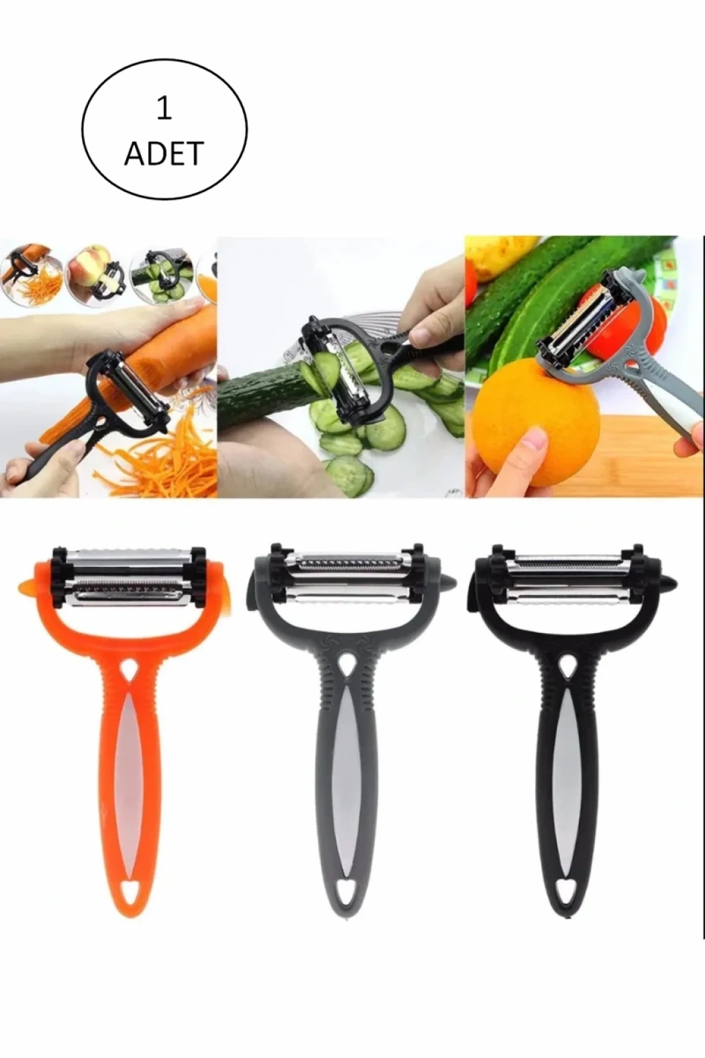 Renkli Saplı 3 Başlı Çelik Soyacak - Soyucu