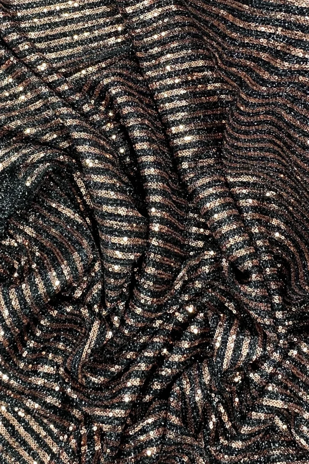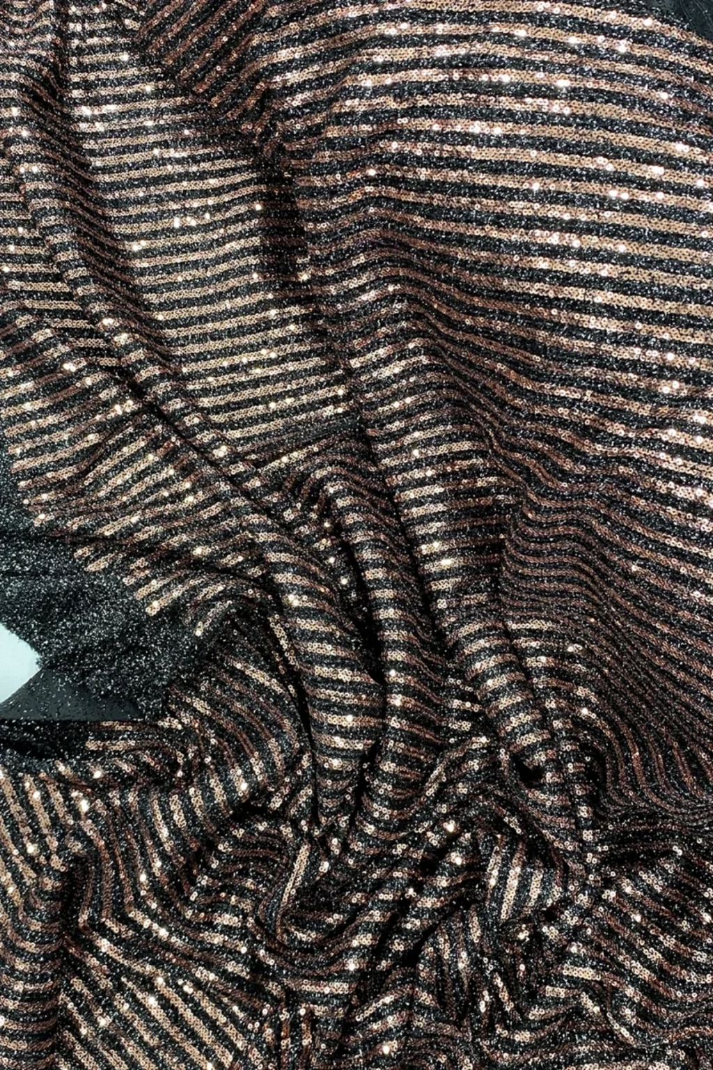 Sakallı Çizgili Pullu Kumaş Pullu Payet Kumaş Abiye Nişan Düğün Siyah Bakır