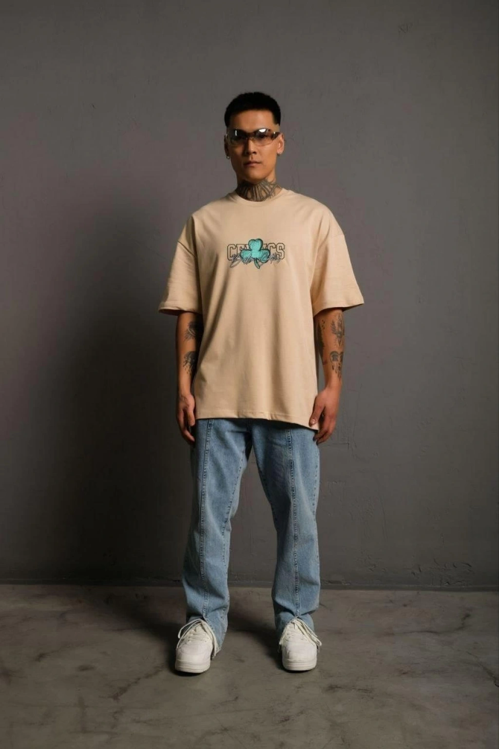Sırt Baskılı T-shirt - Bej -