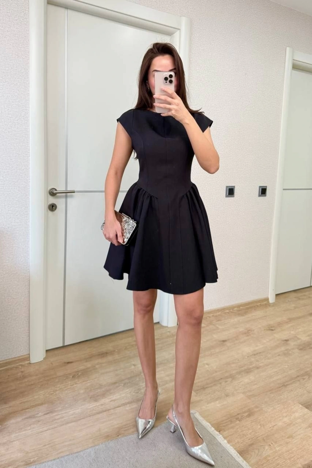 Sırt dekolteli Çan Detaylı Mini Elbise - Siyah -