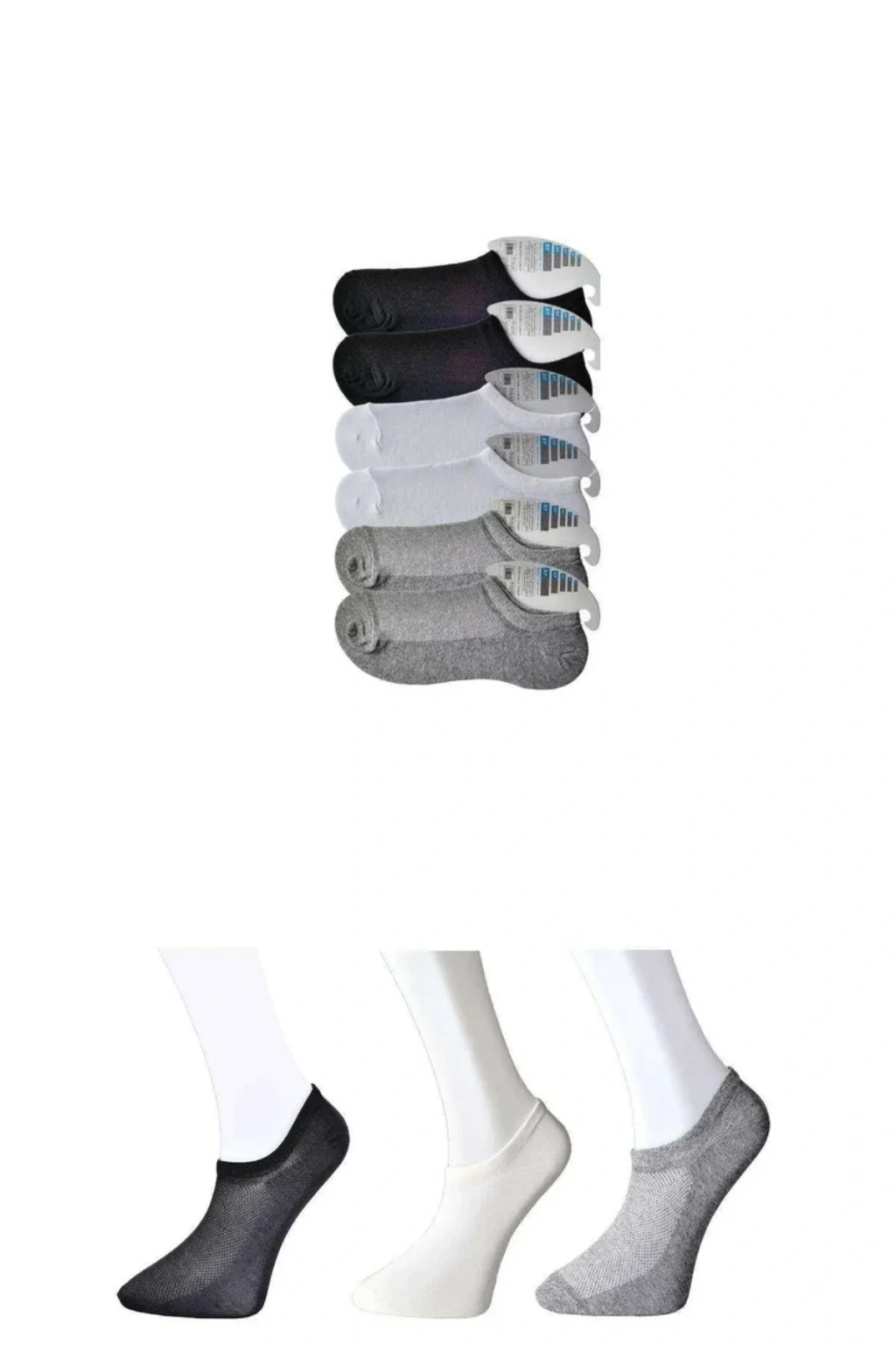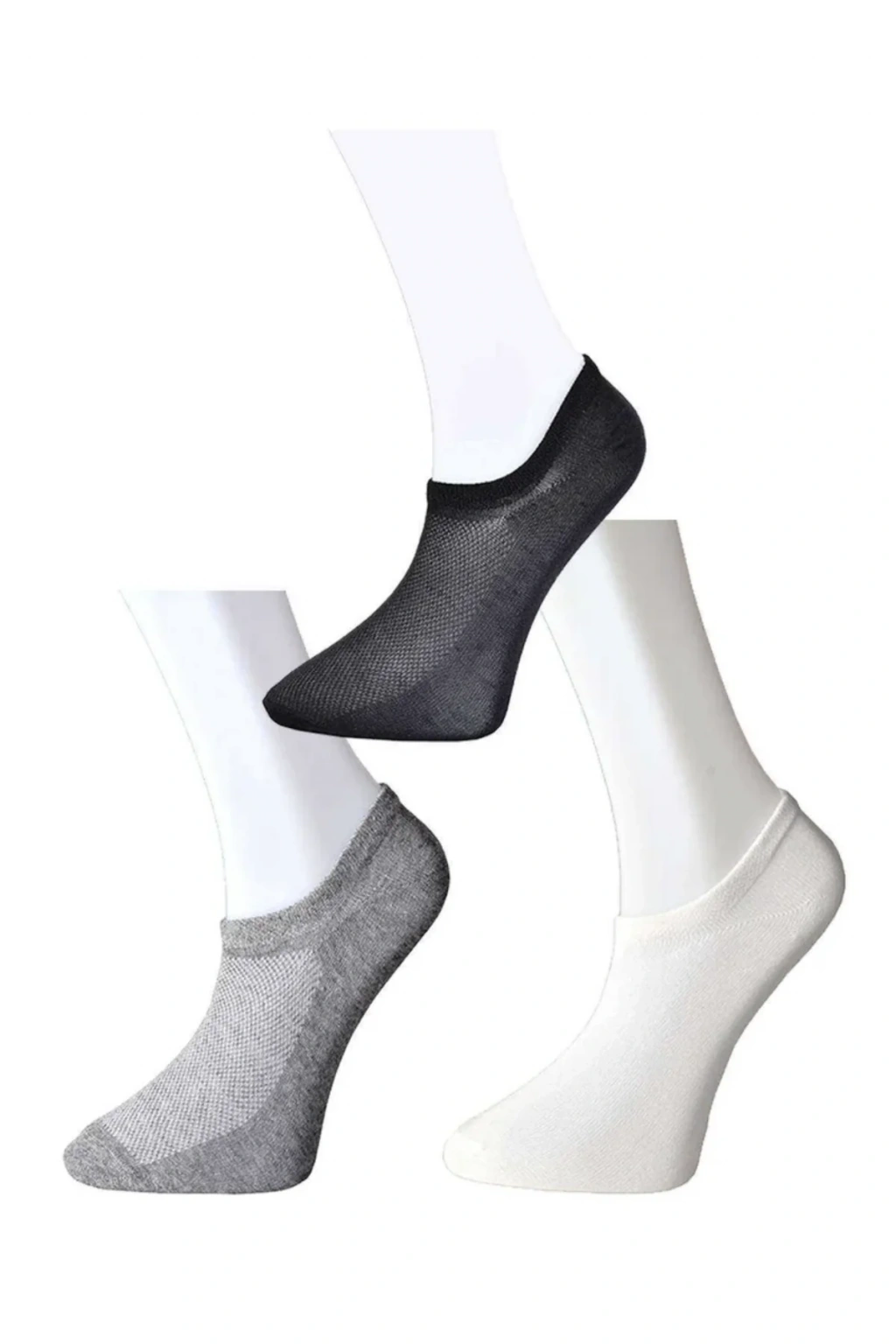 Siyah Gri ve Beyaz Erkek Görünmez Çorap 6 çift