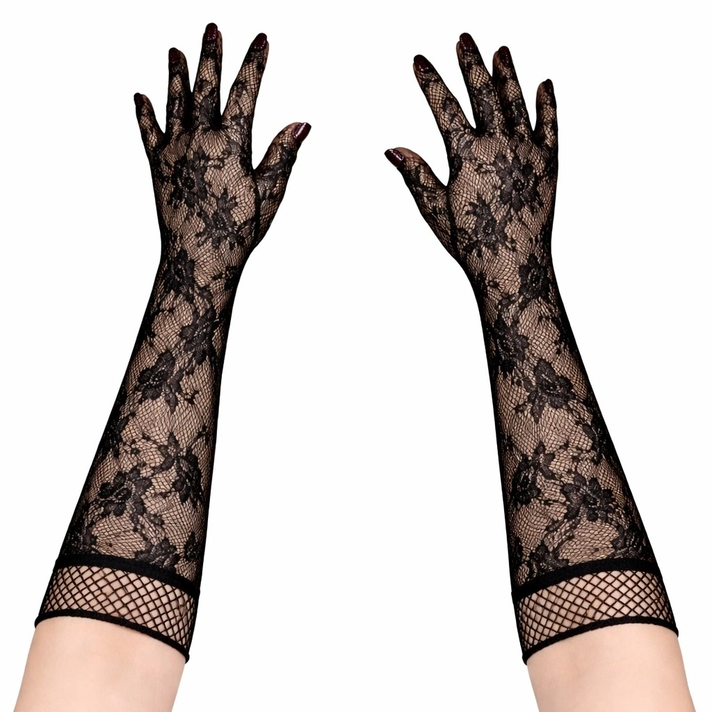 Şık ve zarif tasarımıyla öne çıkan siyah uzun gül desenli dantel eldiven, özel günler, parti organizasyonları ve kostüm kombinleri için ideal bir aksesuardır. İnce dantel dokusu ve zarif gül desenleri ürüne estetik ve dikkat çekici bir görünüm kazandırır.