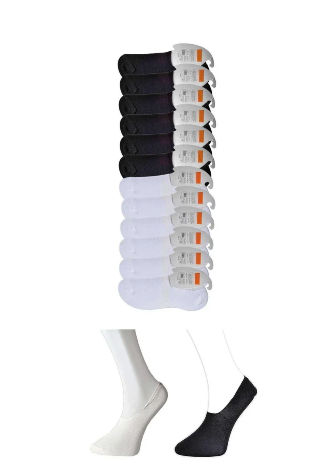 Siyah ve Beyaz Erkek Babet Çorap 12 çift