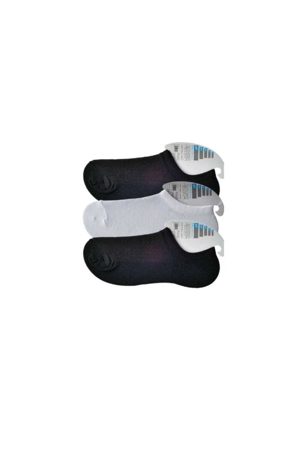 Siyah ve Beyaz Erkek Görünmez Çorap 3 çift