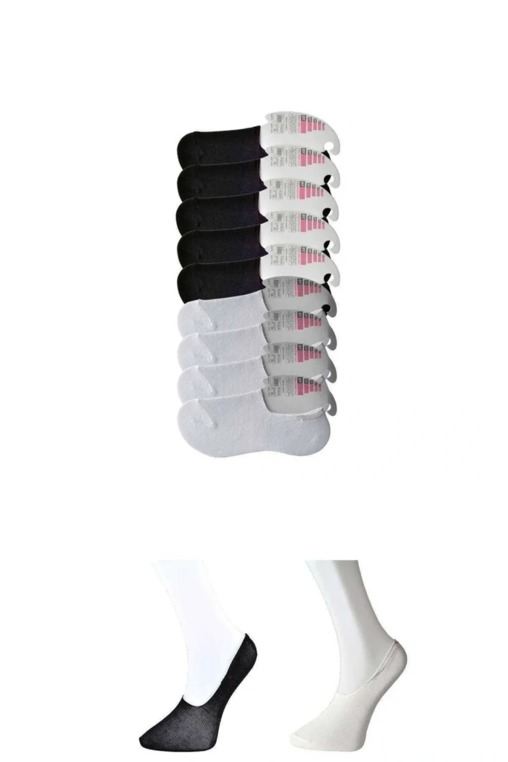Siyah ve Beyaz Kadın Babet Çorap 9 çift