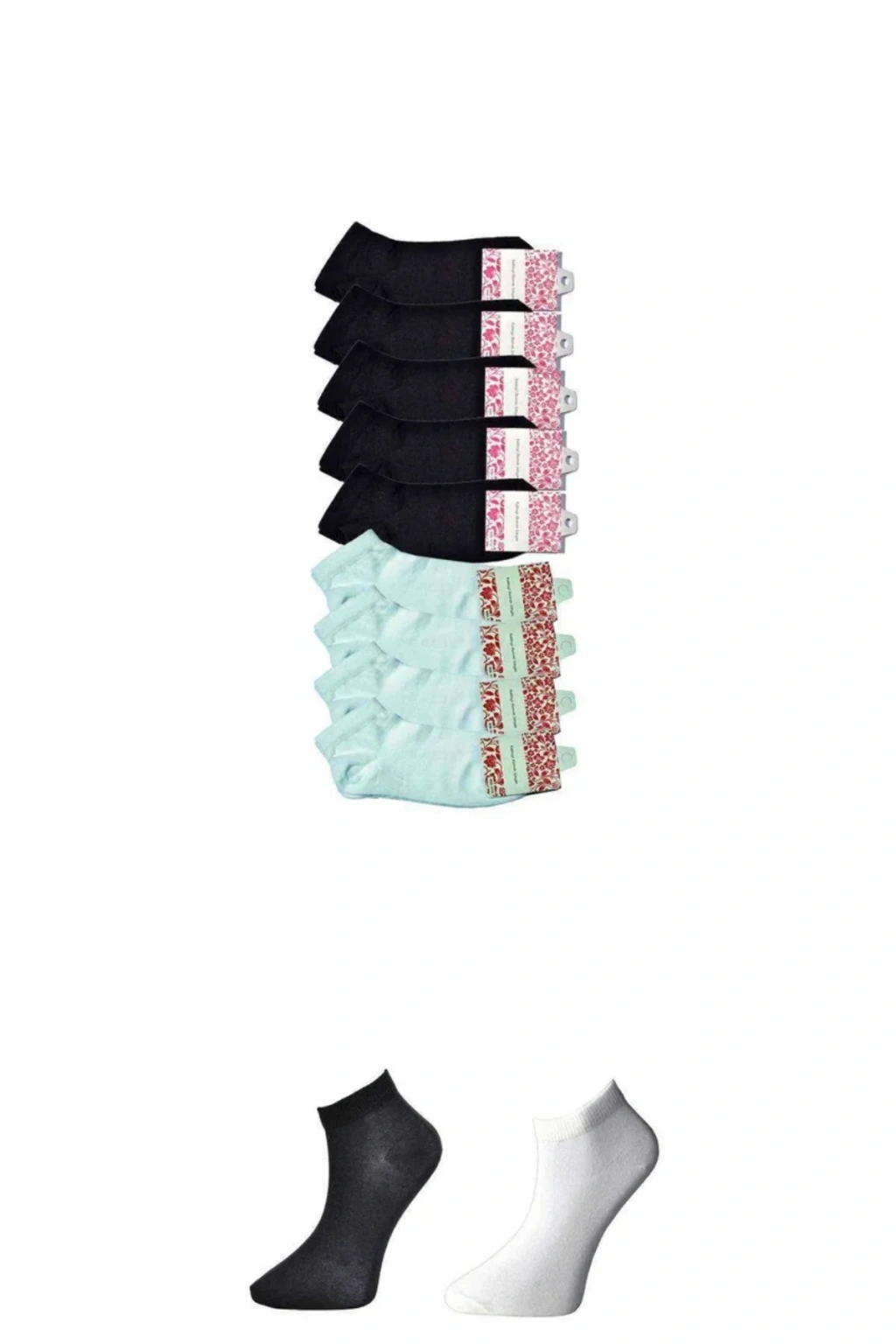 Siyah ve Beyaz Kadın Bilek Çorap 9 çift