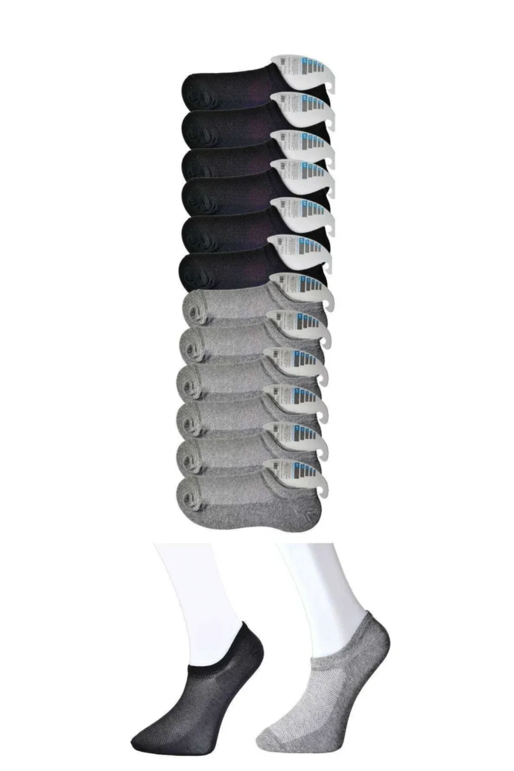 Siyah ve Gri Erkek Görünmez Çorap 12 çift