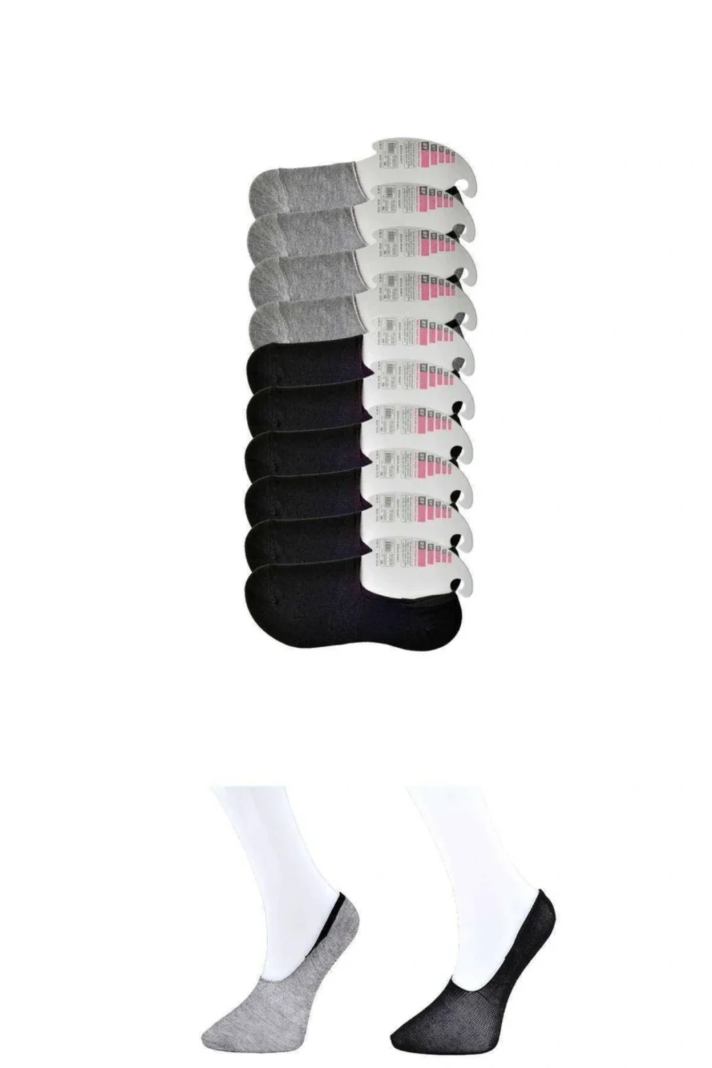 Siyah ve Gri Kadın Babet Çorap 9 çift
