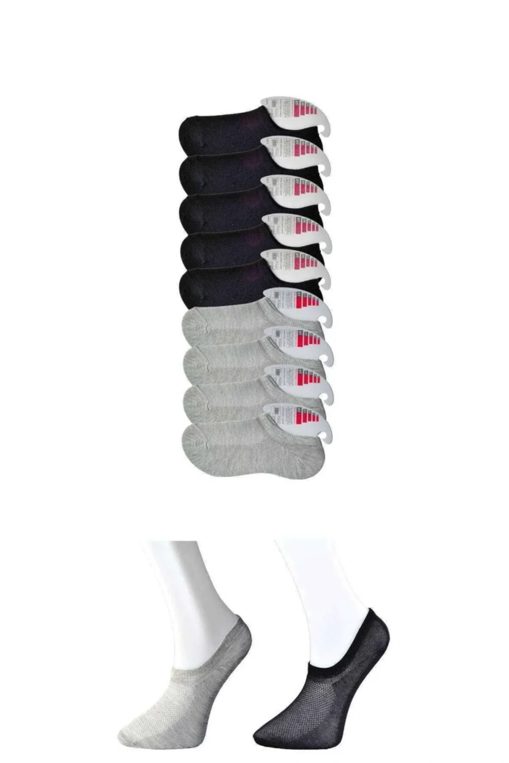 Siyah ve Gri Kadın Görünmez Çorap 9 çift