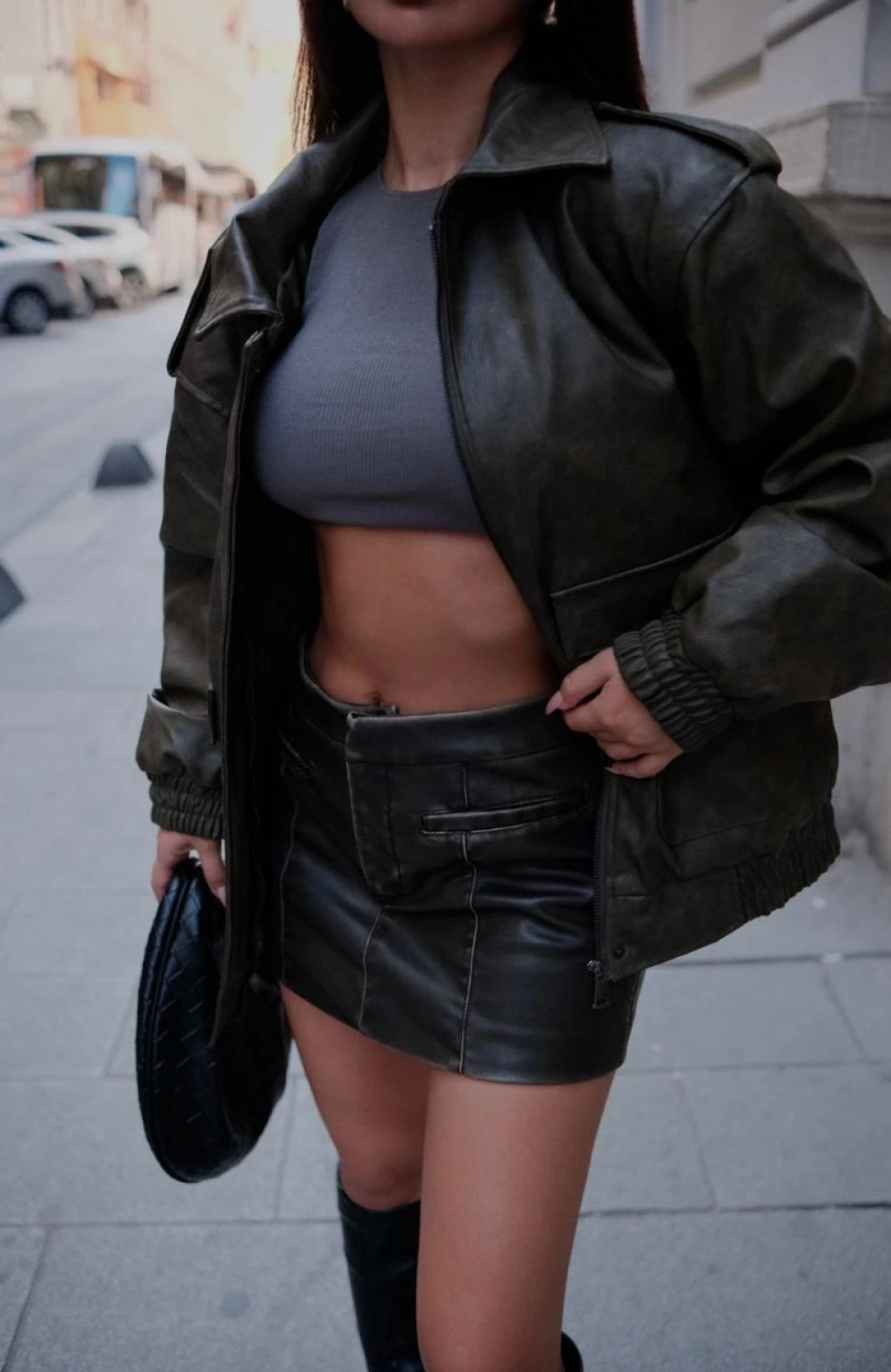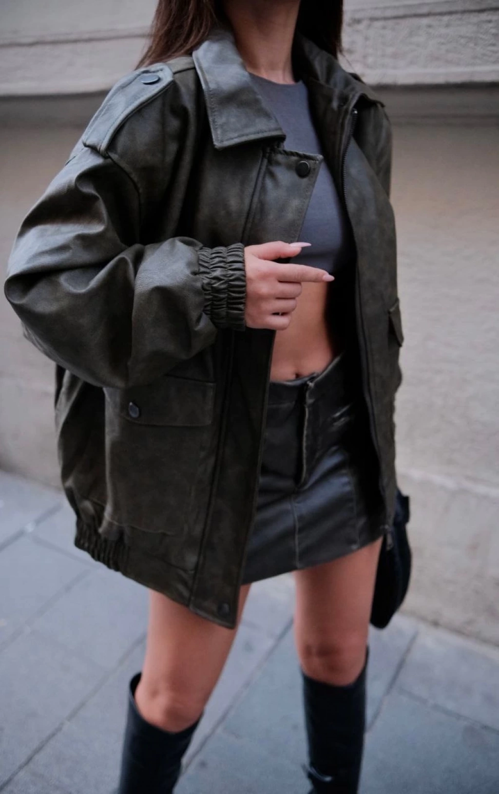 Suni Deri Pilot Ceket -