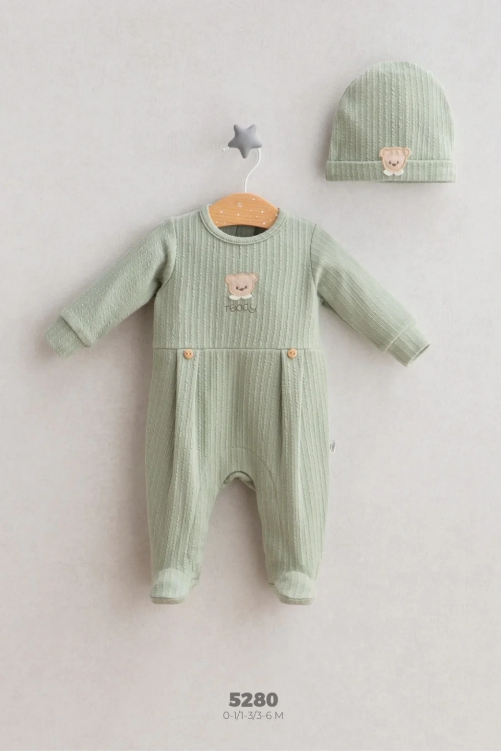 0-6 ay bebekler için uygundur. Teddy bear ayıcık nakışları ile süslenmiştir. Yeşil renkli tasarımıyla göz alıcı bir görünüme sahiptir. Yumuşak ve kaliteli kumaşı bebeğinizin cildine dosttur. Ürün Tongs Baby markasının özel üretimidir, sadece toptan satış yapılmaktadır. Bu sevimli tulumla bebeğiniz hem şık hem de rahat hissedecek!