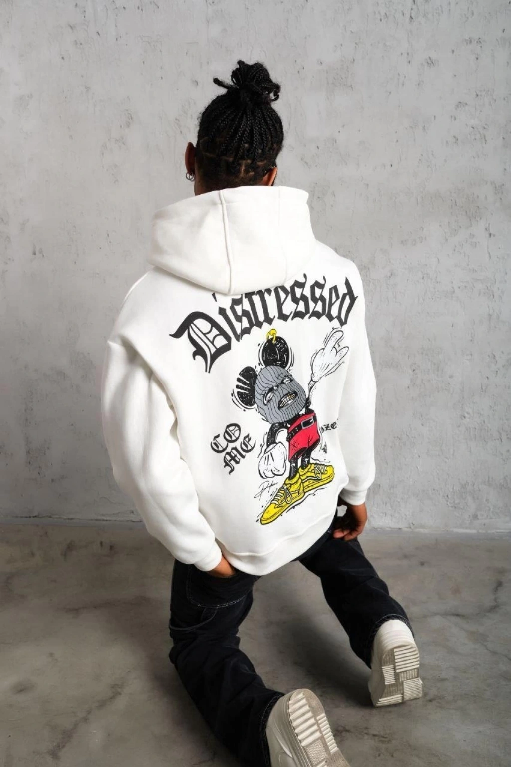 Üç İplik Baskılı Kapüşonlu Sweat - Beyaz -