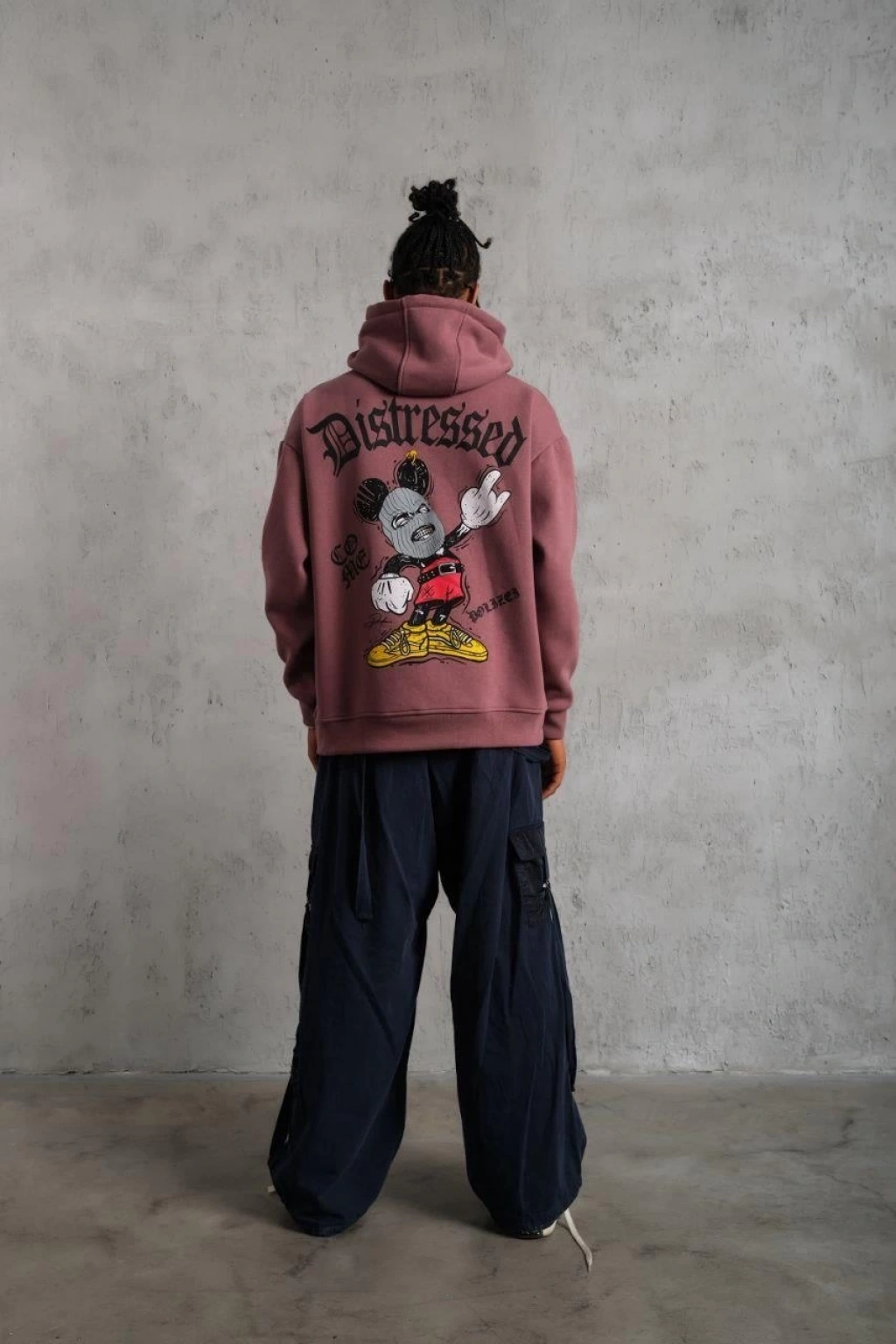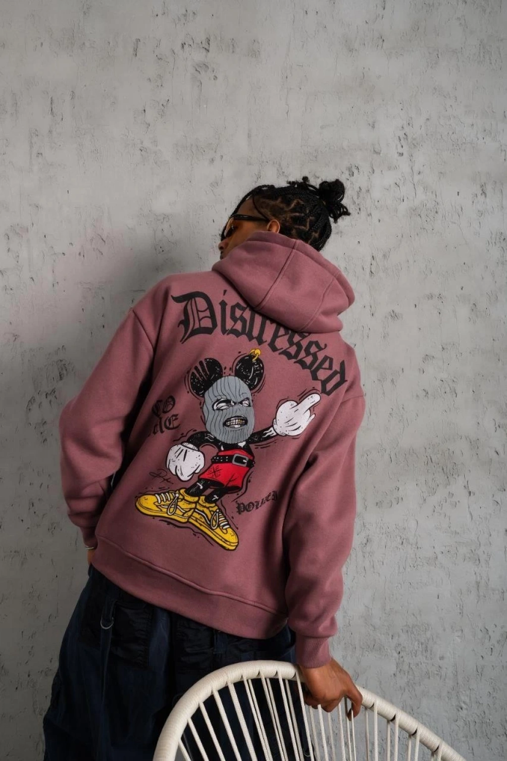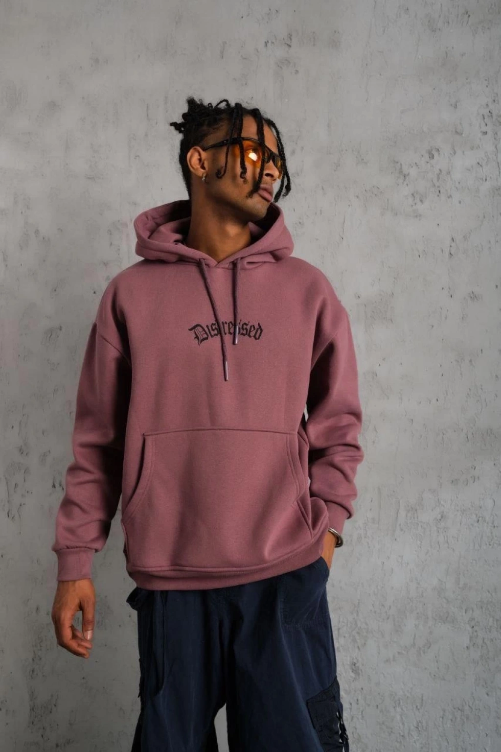 Üç İplik Baskılı Kapüşonlu Sweat - Gül Kurusu