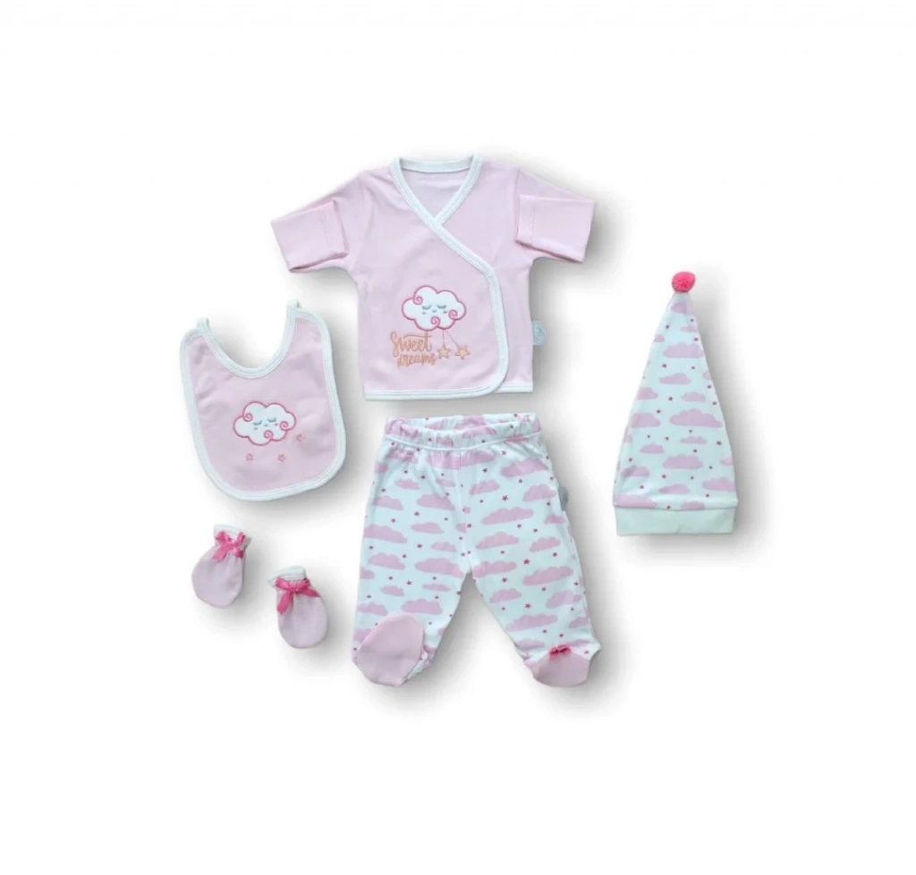 Uykucu Bulut Nakışlı 5li Zıbın Takımı Hastane Çıkışı Pembe