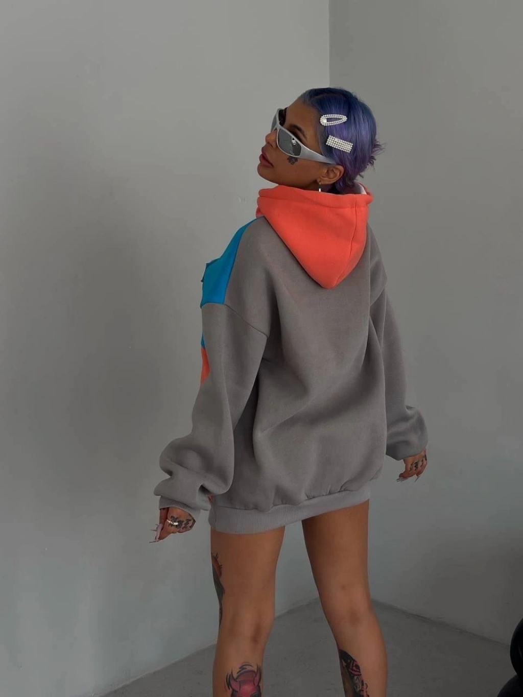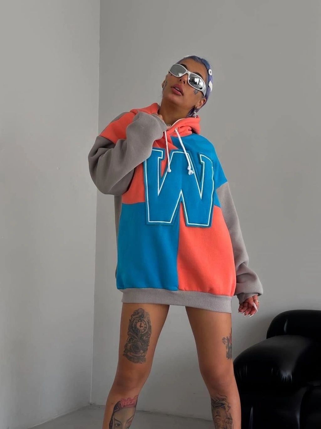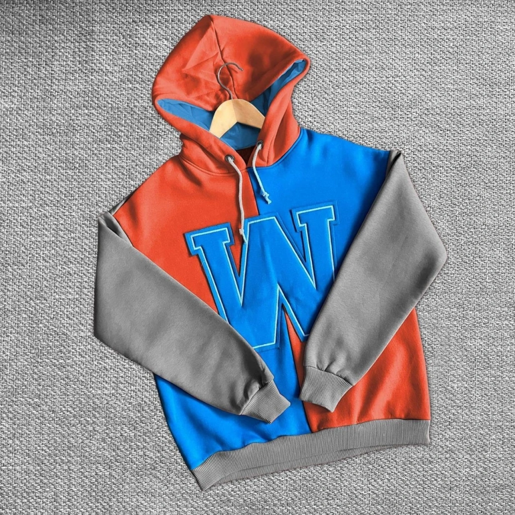 W Nakış İşlemeli Kapüşonlu Sweatshirt - Mavi