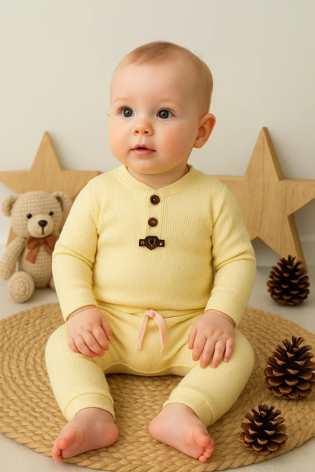 Waffle Çıtlı Düğmeli 2'li Mevsimlik Takım