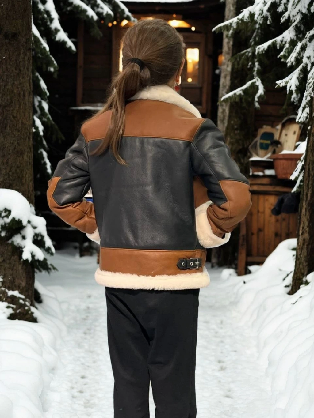 Yakalı Parçalı Kürk - Kahve -