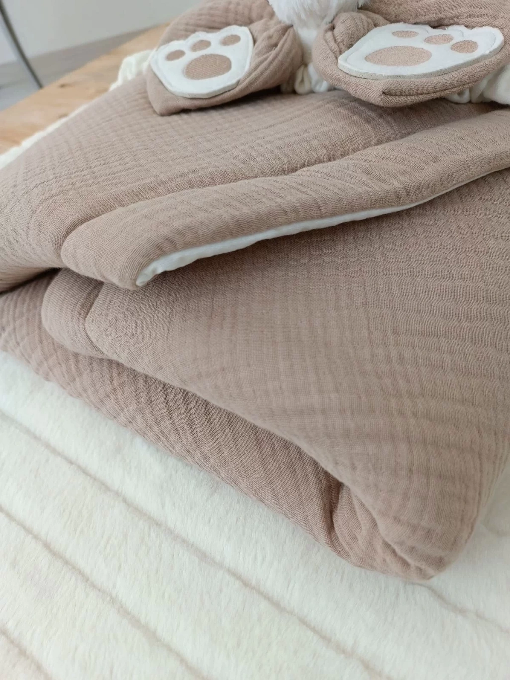 Yenidoğan 4 Kat Müslin Kumaş Kulaklı Patili Fiyonk Bebek Battaniyesi Kundak Yeşil