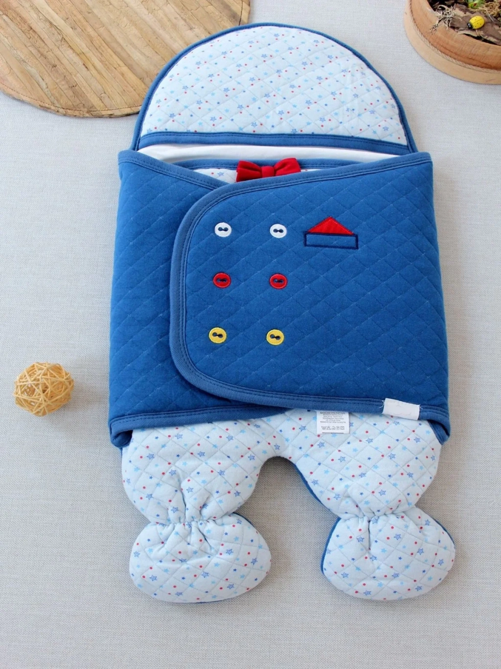 Yenidoğan Açılır Kucaklı Smokin Ayaklı Erkek Bebek Kundak Mavi