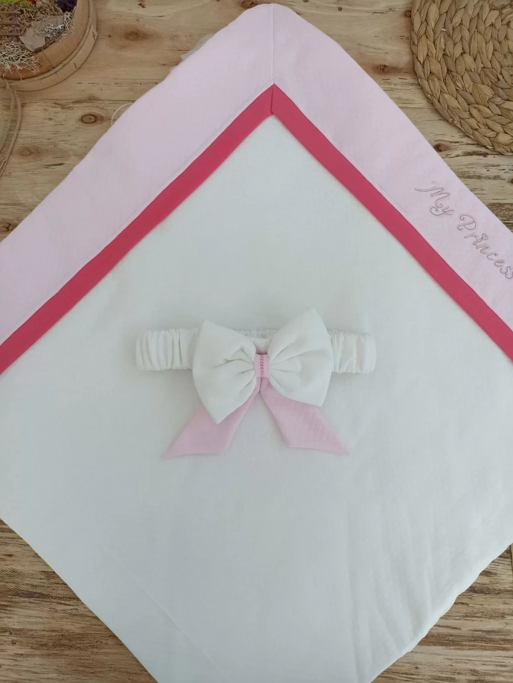 Yenidoğan Bal Peteği My Prince Taç Nakışlı Delüks Kundak Bebek Battaniyesi Pembe