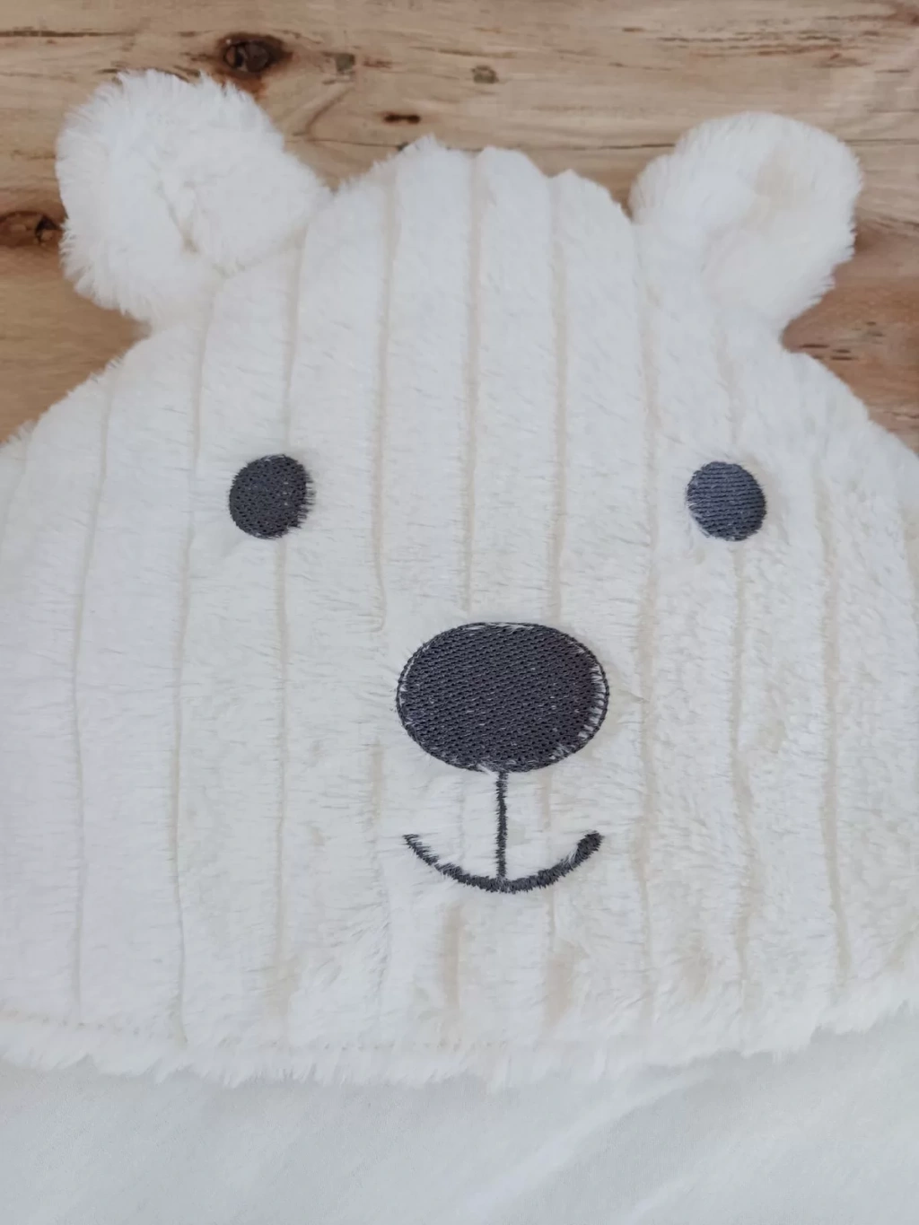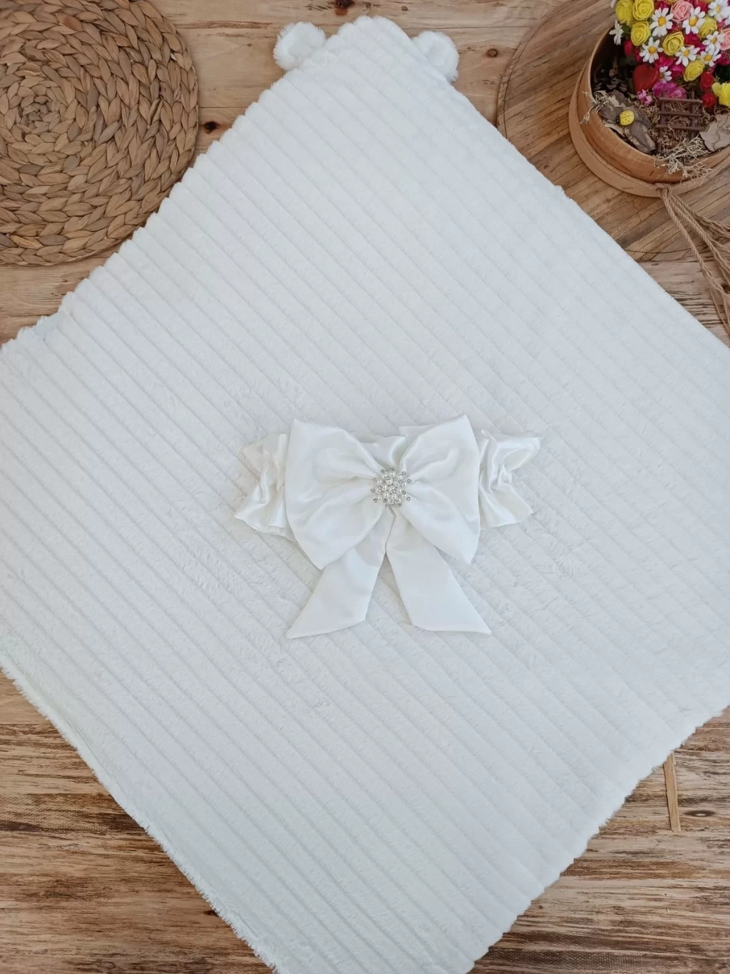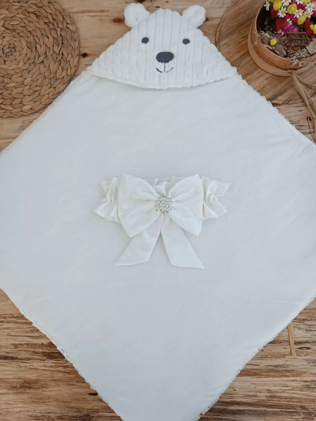 Yenidoğan Beyaz Wool Yün Kumaş Ayıcık Kulaklı Kundak Bebek Battaniyesi Beyaz