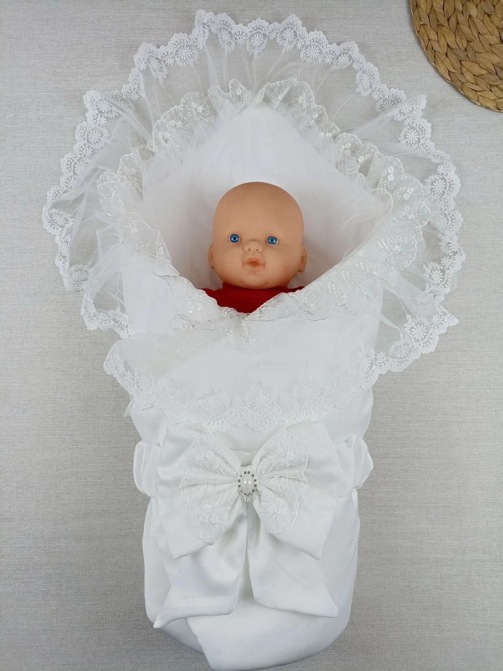 Yenidoğan İpek Pamuklu İnci Lüks Kundak Bebek Battaniyesi Ekru