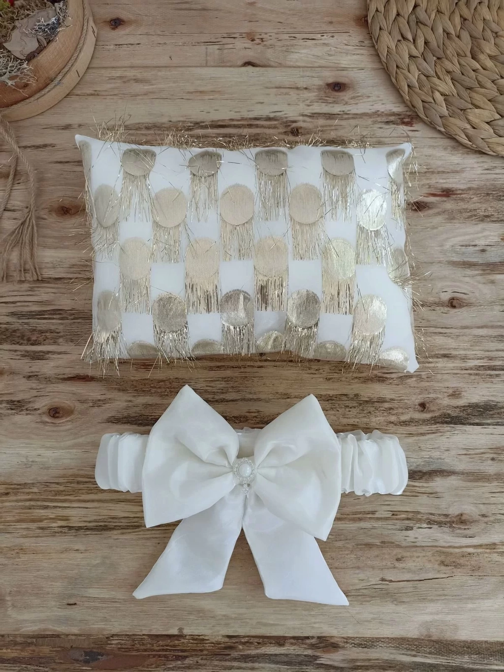 Yenidoğan İzmir İncisi Tül İşlemeli Pamuklu Fiyonklu Kundaklı Lüks 3lü Alt Açma Seti Gold