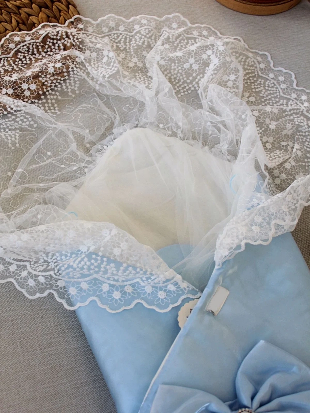Yenidoğan Kumru İnci Fiyonk Kristal Parlak Duvaklı Kundak Bebek Battaniyesi Mavi